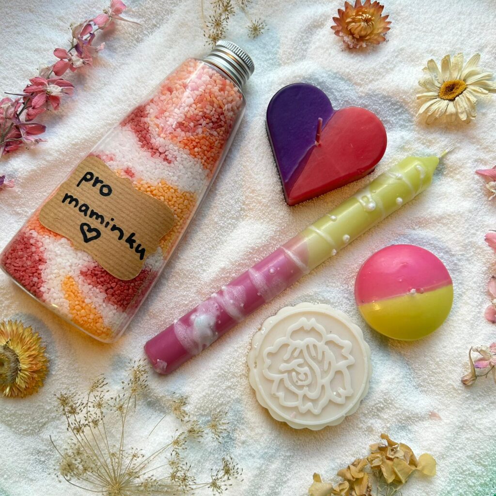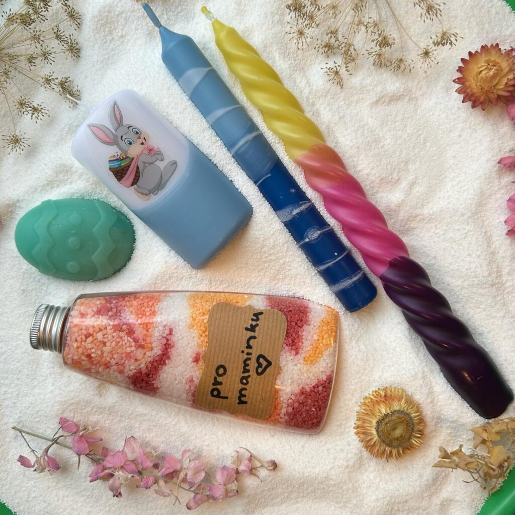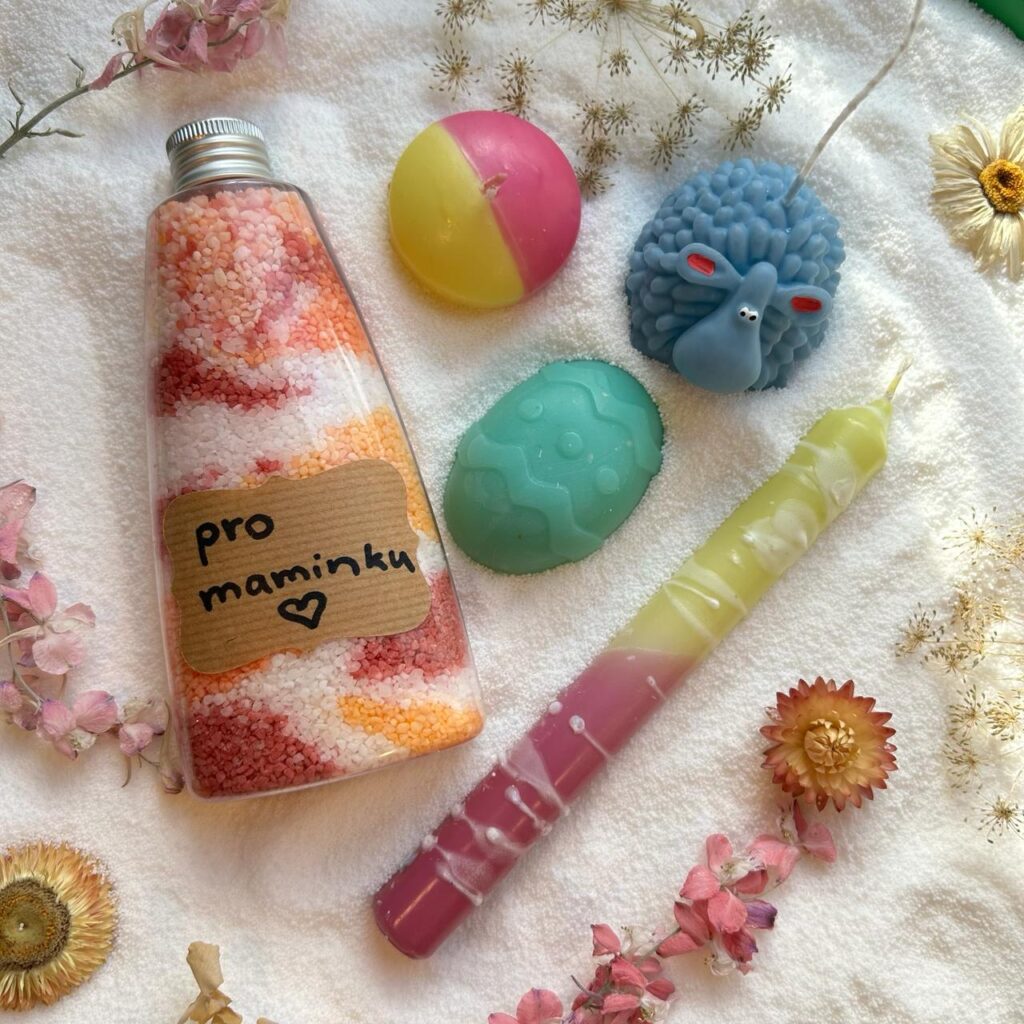 V rámci tvořivé dílny je pro děti možnost vlastnoručního barvení a zdobení svíček různých tvarů a velikostí, odlévání voňavých mýdel, míchání vlastní variace koupelových solí a sezóně také vánočních a velikonočních svíček. To vše si děti odnesou v krásné malovací dárkové tašce.